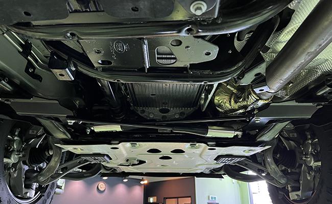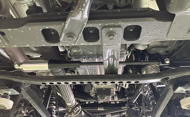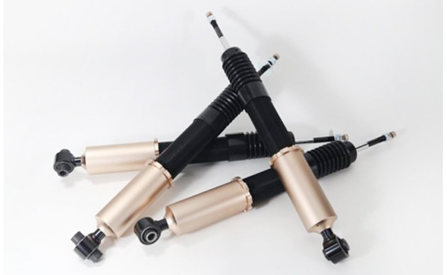 - ショックを全長調整式とすることで、ノーマルサス~ダウンサス~リフトアップサスのさまざまな車高に対応し、乗り心地を確保します。