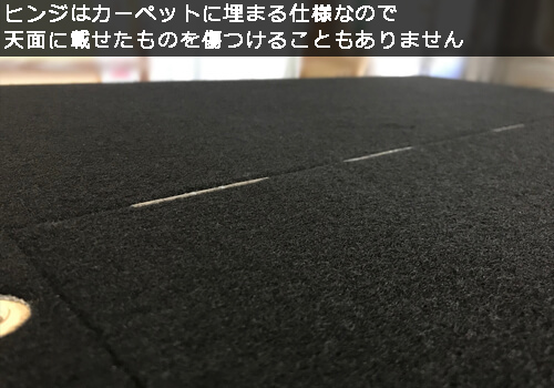 ¥90,000(WITHOUT TAX)/E - タイヤハウジングの車内の張り出しを簡単な組み立てでフラットにすることができます。天板と側板は強度重視の二重構造となっており、重量物を積んでも安心の設計。